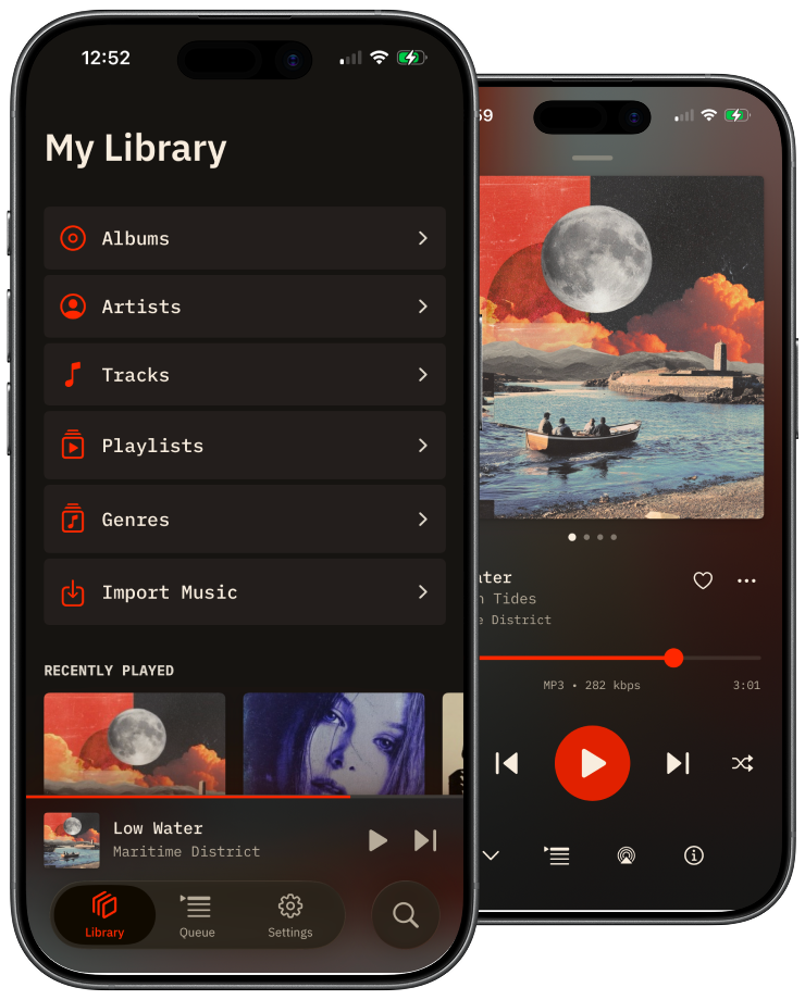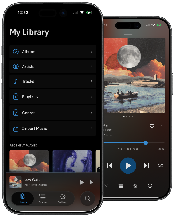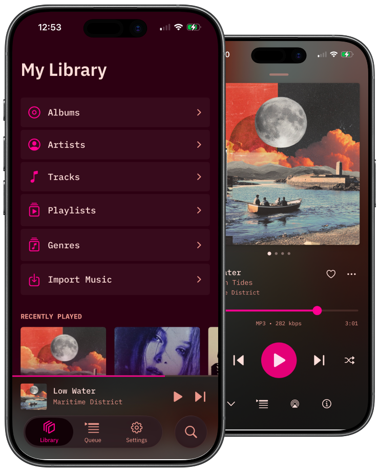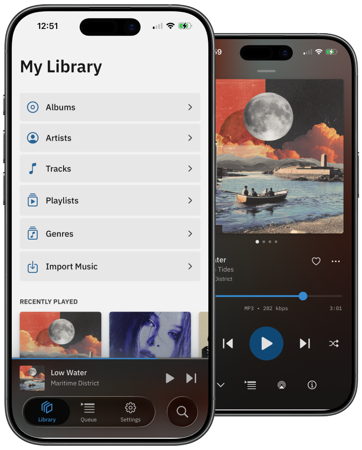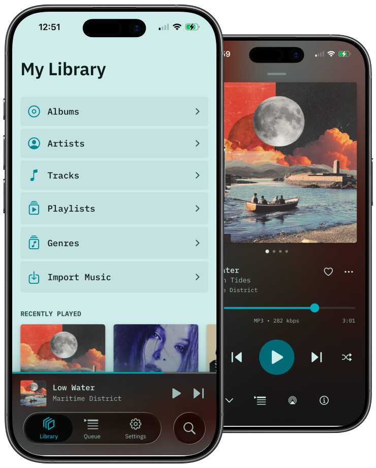 Choose your style with handcrafted themes. Player backgrounds adapt to your album artwork.